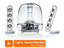 Juego de Bocinas C/Subwoofer entradas análogas bases de metal completamente ajustables bocinas de tecnología avanzada salida total 40 Watts Rms Woofer 20 Watts, Satélites 10 Watts Rms x canal, respuesta de frecuencia de 44Hz - 20kHz.